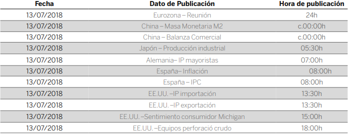 Ligeras subidas en los índices europeos que consiguieron salvar la jornada apoyados en las noticias que llegaban desde el sector telecomunicaciones, que centró todas las miradas de los inversores tras la contraoferta realizada por Comcast sobre Sky PLC por importe de 26.000 millones de libras, superando así la oferta realizada inicialmente por parte de 21st Century Fox, del magnate Rupert Mudorch, por 24.500 millones de libras. Wall Street recuperó las subidas apoyado por los resultados de los datos macro conocidos ayer, sobre todo el importante dato del IPC de EE.UU. de junio, que repuntó del 2,8% al 2,9%.