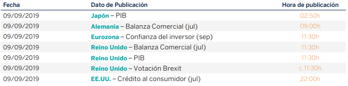 El presidente de la FED, Jerome Powell, no decepcionó a los inversores en su comparecencia en Zurich el pasado viernes, en la que constató que se tomaran las medidas necesarias que mantengan la expansión económica del país y, los mercados ya descuentan un nuevo recorte de los tipos de interés el próximo 18 de septiembre por parte de la FED. Esta semana la atención de los inversores estará centrada este jueves en el BCE y en sus posibles medidas, que ya descuentan los mercados, para estimular la economía.