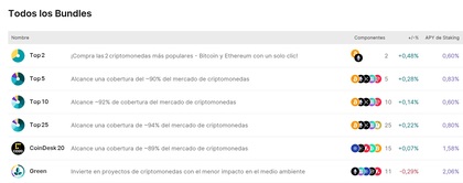 ✅ Sus cestas de criptomonedas que pueden llegar a incluir hasta 25 altcoins, son muy interesantes. Mientras que su programa de staking ofrece recompensas de hasta el 11% APY sin necesidad de bloqueos.