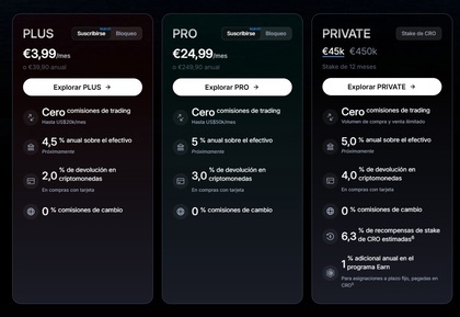 Diferentes programas de suscripción de Crypto.com