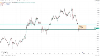 Evolución del precio de Bitcoin donde podemos ver una lateralización