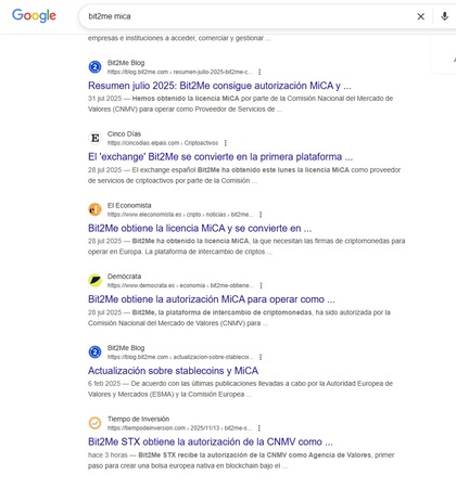 ¿Cómo saberlo?: En realidad, basta con que teclees en Google en nombre del intermediario con el que vayas a operar y la palabra “MiCA”, automáticamente verás decenas de referencias.