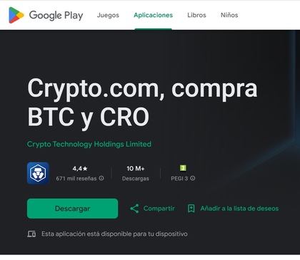 Opiniones de la comunidad sobre Crypto.com en Google Play Store