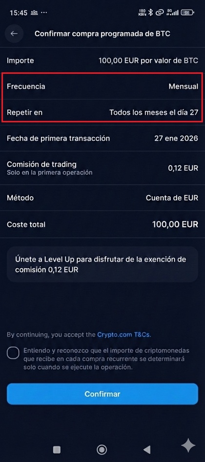 Ejemplo de DCA con una orden de compra recurrente.