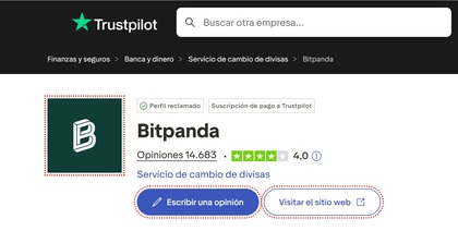 Opiniones de los usuario sobre Bitpanda en Trustpilot