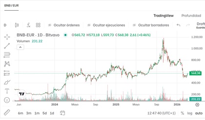 En conjunto, estos datos dibujan a BNB como un “activo maduro” dentro del mercado cripto. Además, que capitalización y FDV sean iguales y que circulante, total y máximo coincidan (136,35M BNB) sugiere que prácticamente todo el suministro ya está en el mercado, reduciendo el riesgo de “dilución” por futuras emisiones.