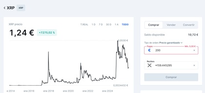 Cotización del token XRP en Bitvavo