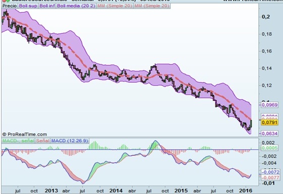 En DIVISAS, seguimos pensando en vender dólares, movimiento que se ha iniciado la semana pasada que tiene como objetivo la zona de 1.17. Cualquier caída hasta 1.0985-1.1020 sería una oportunidad. Este movimiento puede dar soporte a uno de los sectores más castigados en los últimos meses como es el de recursos básicos y petróleo.