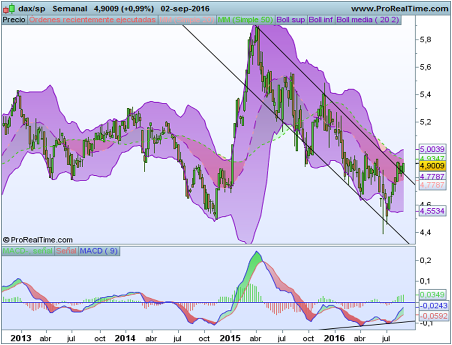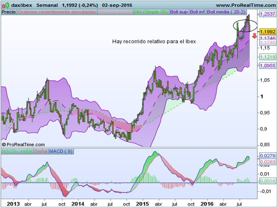 Esta semana adjuntamos gráficos del Ibex 35, relativo de dax/ibex y el de bolsa europea/americana. Niveles de divisa que luego son los que terminan marcando la evolución del resto de activos.