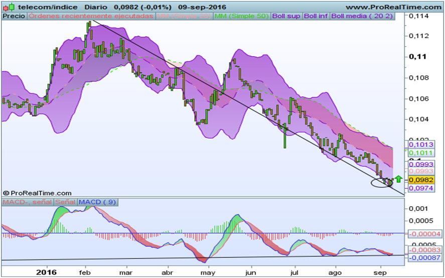 Adjuntamos gráficos del Ibex 35, relativo de telecos y bancos contra los índices y el de bolsa Americana. Seguimos muy de cerca la divisa, que estos días ha dado un respiro a Europa, pensamos que por encima de 1.1350, todo volvería a cambiar.
