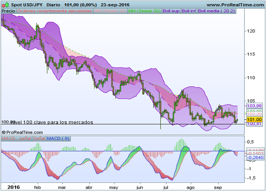 Esta semana tanto el BOJ como la FED han decidido no moverse de donde están, algo que ha sido bien interpretado por los mercados en un primer momento, sobre todo por la decisión de la FED de ganar tiempo y buscar un momento más idóneo para normalizar su política monetaria. A pesar de todo, destacamos el movimiento del usd/jpy que pone en cautela cualquier recuperación de los activos de riesgo y que está cerca del nivel de 100, señal de alarma y que debemos vigilar muy de cerca.