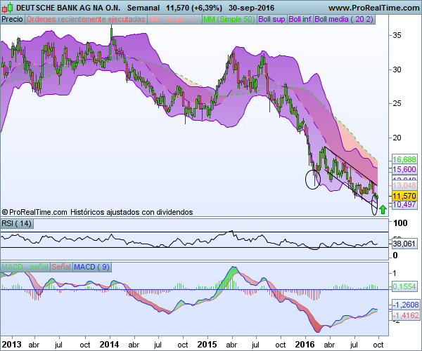 Deutsche Bank y sin que nada cambie podría confirmar un rebote del 30-40% si la figura de martillo de la semana pasada y sus mínimos no se pierden en el corto plazo.