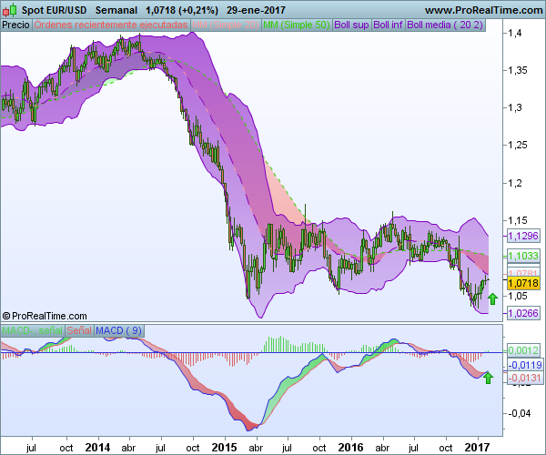 En el eur/usd, apunta a un movimiento al alza en las próximas semanas, pendiente de la FEd de esta semana por si acelera el proceso.