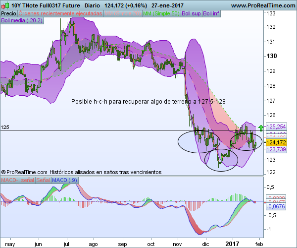 En tipos de interés, seguimos negativos de fondo pero en el corto plazo podemos observar algo de mejora. Tal vez sea el momento de neutralizar posiciones y esperar alago más arriba para nuevos planteamientos