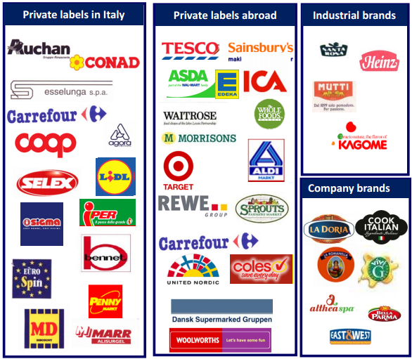 Es líder en varias de sus líneas de producción en Italia y Reino Unido, y de tomate en Japón y Australia. El negocio se basa principalmente en el segmento de las marcas blancas de los supermercados (92% del negocio).
