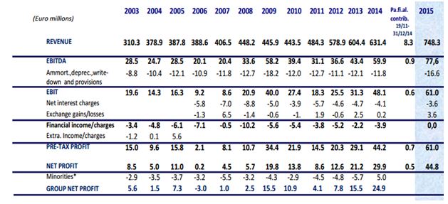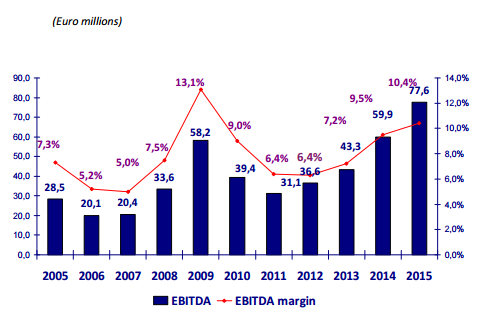 Si bien la evolución de las ventas en los últimos años ha sido muy positiva, se puede observar una volatilidad en los beneficios derivada de la inconsistencia de los márgenes. Esto es consecuencia de la inestabilidad de las cosechas, principalmente la del tomate.