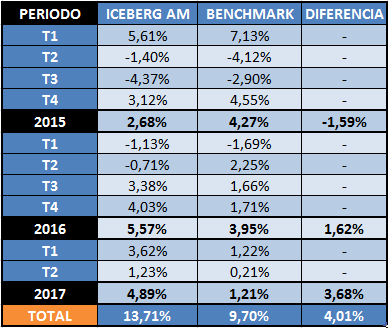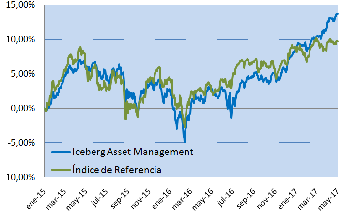 Iceberg Asset Management sumó un avance del 1,23% en el mes de abril y un alcanzaba un 4,89% en 2017. El valor liquidativo se sitúa en nuevos máximos históricos mensuales, acumulando una ganancia del 13,71% desde el 1 de enero de 2015.