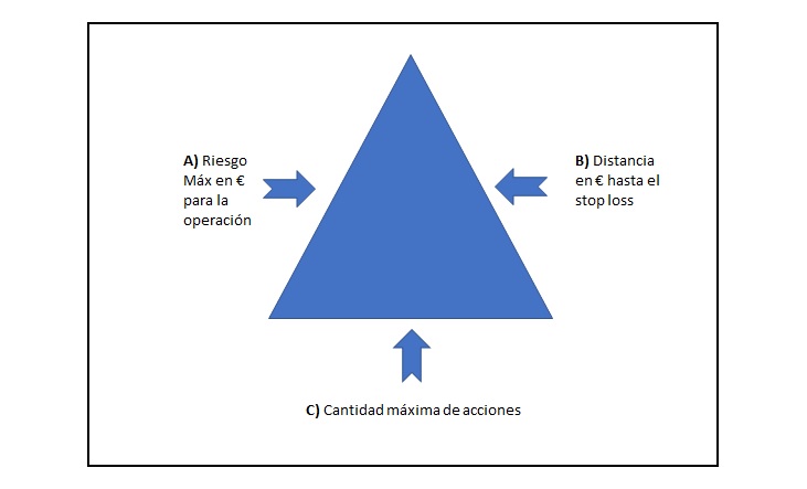 Todas estas variables están correlacionadas, esto significa que la modificación de alguna repercute y condiciona a las demás. Por ejemplo, si modificamos la distancia al stop loss, tendremos que replantearnos cuántas acciones podremos comprar y cuánto riesgo total estamos asumiendo. Si por la contra, queremos reducir el riesgo, tendremos que disminuir el número de acciones o acercar la posición del stop loss.