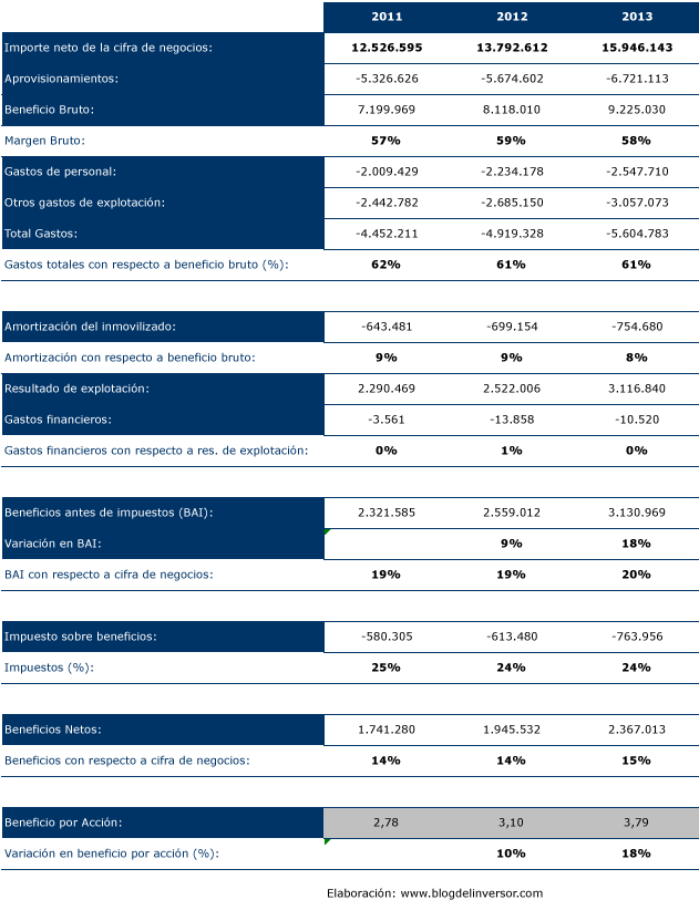 Evidentemente, sus ventas han ido en aumento todos estos últimos años incluso a pesar de la crisis que hemos vivido. Esto es fundamental ya que si una empresa no genera ventas, es difícil que gane dinero. Pero esto no es todo. Inditex ha conseguido mantener unos márgenes de beneficio sólidos. Puesto que no tiene apenas deuda y realiza inversiones en capex de forma sostenible, sus beneficios son cuantiosos y aumentan al compás de las ventas.