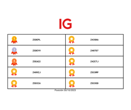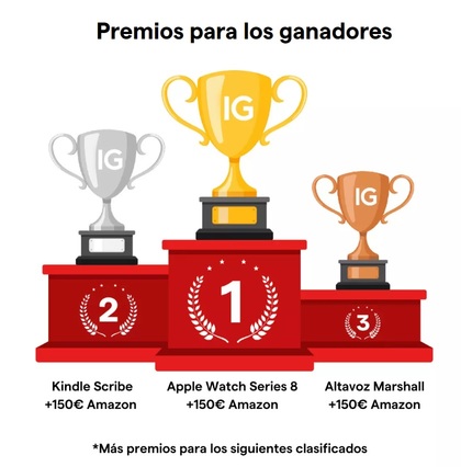 Con todo, a fecha de 30 de octubre de 2023, se conocerá el resultado final del Torneo de Trading organizado por Rankia e IG, y los 10 primeros en el Ranking serán los ganadores del mismo, con los siguientes premios: