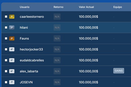Desde ese momento, todas las carteras parten desde el mismo punto con 100.000 dólares virtuales ya invertidos (o la cantidad del portfolio que haya decidido exponer), y empezarán a contar de acuerdo al rendimiento de tus posiciones en mercado.