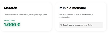 Por lo que el ganador de cada sprint mensual se llevará 100 €, premiando al inversor con mayor rentabilidad exclusivamente durante ese mes.