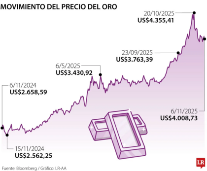 Precio histórico de la onza de oro | Fuente: Bloomberg / Gráfico: LR-AA