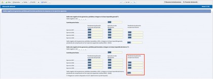 Ir a la primera sub-sección --> "Saldos negativos de ganancias y pérdidas patrimoniales pendientes de compensar en los ejercicios siguientes"