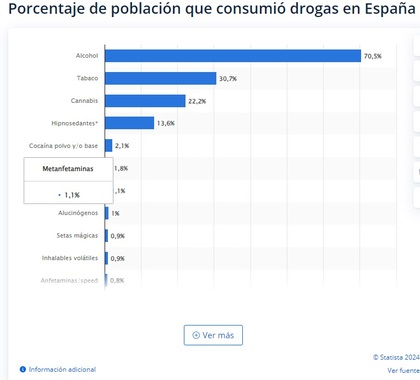 Las drogas con mayor consumo de España | Fuente: Statista.