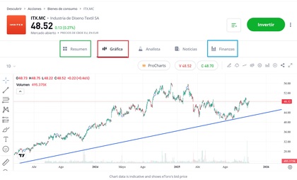 Resumen de la ficha de la acción de Inditex en eToro