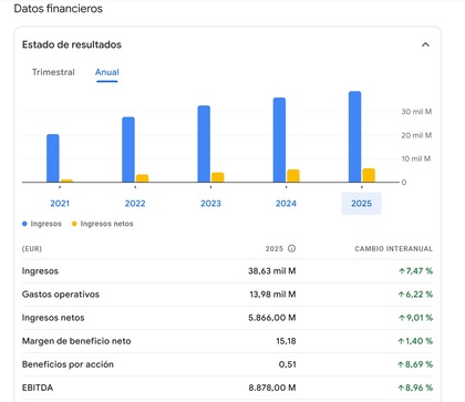 BPAs: Mientras que los beneficios por acción también han ido aumentando este año (en trimestral), tras el desplome que se dieron a cierre de 2024 (-65%), y razón por la cuál la compañía española retrocedió cerca de un 30%
