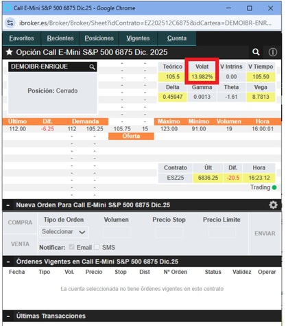 Como veremos más adelante, iBroker(broker español especializado en derivados) publica la volatilidad implícita en tiempo real de todas las opciones. Un dato muy valioso para especuladores y traders.