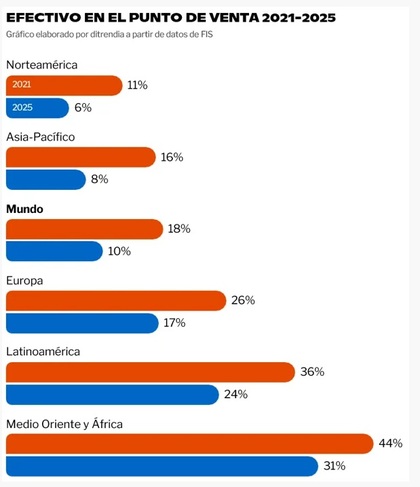 Se prevé que para 2026, solo el 10% de las transacciones se realizarán en efectivo, lo que obliga a todas las empresas a adoptar estas nuevas tecnologías para sobrevivir.