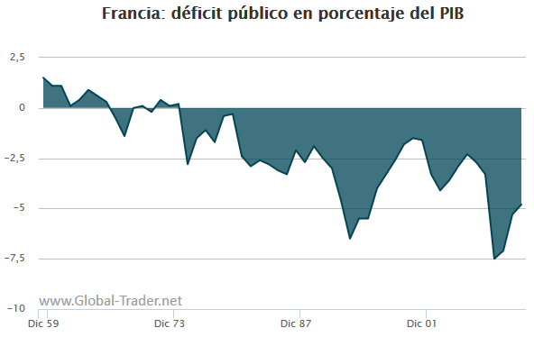 En el gráfico anterior vemos una realidad aterradora: desde 1975, el gobierno francés ha gastado sistemáticamente todos los años más dinero del que ingresa. Hace 40 años que Francia tiene DÉFICIT PRESUPUESTARIO, ya sean años de bonanza ó años de crisis. Eso ni siquiera es Keynesiano...