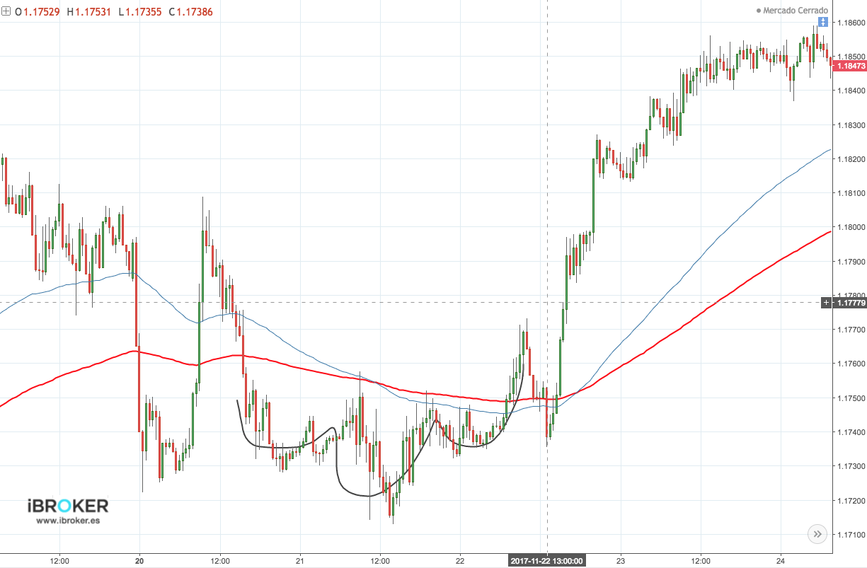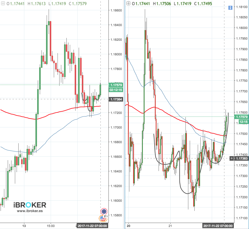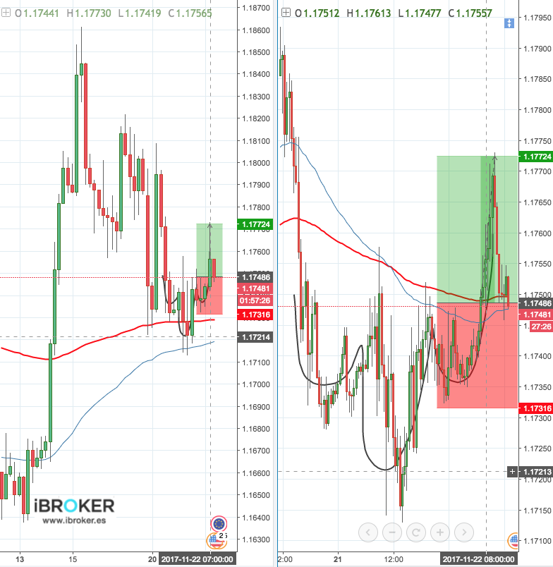 Como puedes ver en el gráfico de la derecha se observa en una hora una figura de un cabeza con hombros. Como sabes, esto es una figura de vuelta en este caso con implicaciones alcistas para el EURUSD. Lo que quiere decir que es una figura que nos estaba mostrando como el USD podría debilitarse en el caso de confirmarse. Algo que finalmente sucedió. ¿Por qué pudimos comprar el EURUSD? Porque Yellen dio ese titular o porque teníamos un cabeza con hombros. En realidad por ambos. De hecho, una señal técnica apoyada por una noticia fundamental a menudo tiene mejores resultados.
