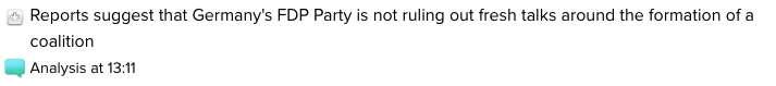 Cerca de las 13:00 se dio el comentario de que las conversaciones para la formación de gobiernos podrían seguir adelante. ¿Reacción del mercado?