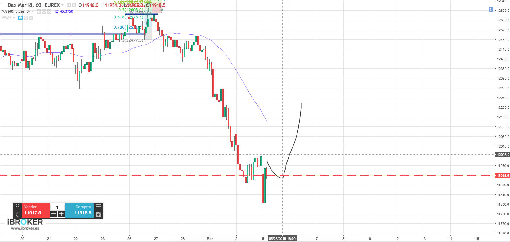 Viendo la correlación inversa que el mercado tiene con el S&P500 en el día de hoy podríamos estar ante una confirmación del un giro a corto plazo. Echa un vistazo al S&P500 en 1h. Veremos la confirmación. No podemos saberlo.