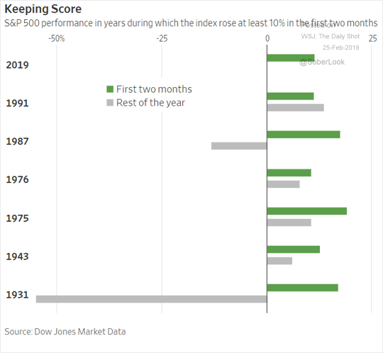 Cada vez que el mercado ha subido más de un 10% en los dos primeros meses del año, no siguió mucho más durante el resto del mismo