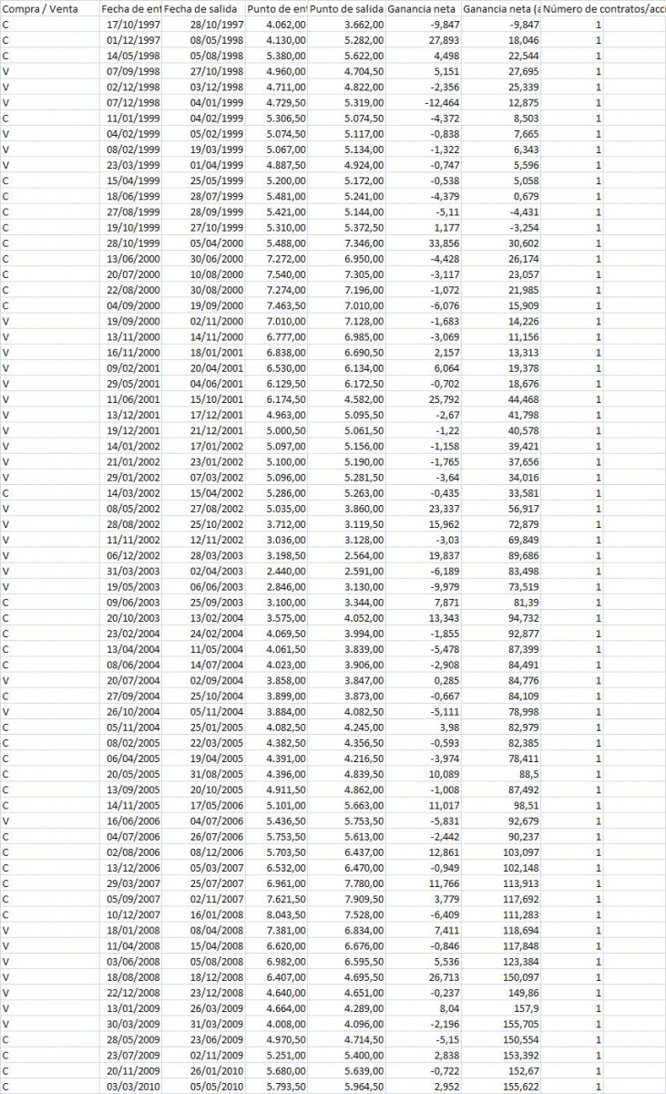 La verdad es que nada como una prueba para ver que los resultados no son como podríamos esperar, aunque son buenos, no son como los de la primera muestra, además del considerable aumento de comisiones por las operaciones realizadas con peligro el consiguiente peligro de deslizamiento que tiene esto, el mayor coste que se asume en la operativa con futuros. Vemos como las cosas más fáciles son en este caso mucho más efectivas. Y así lo son el la mayoría de los casos.