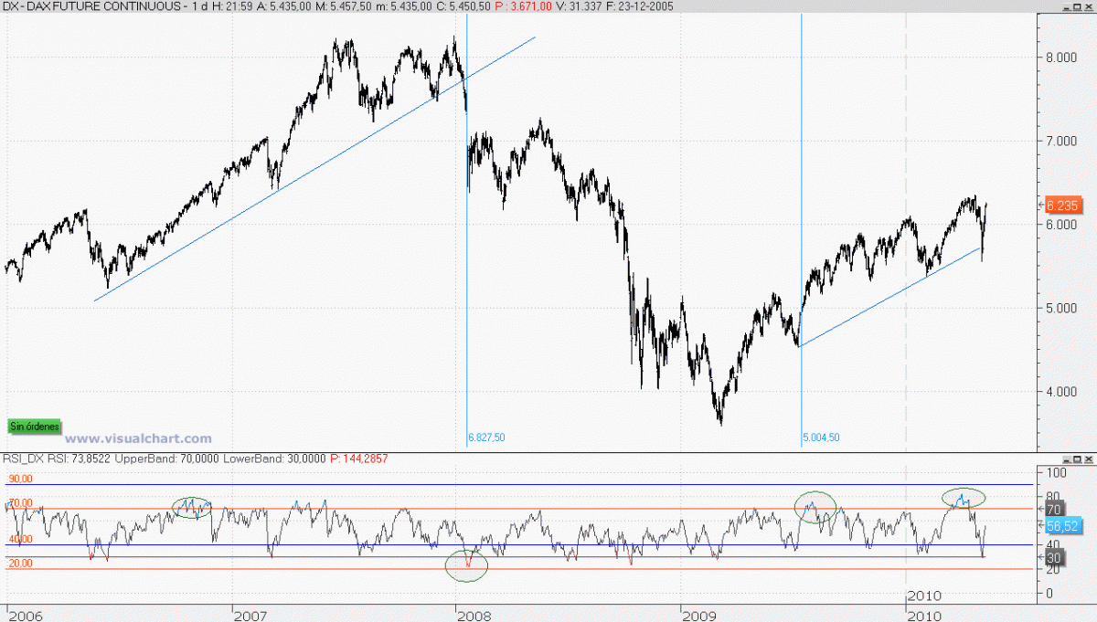 Como podemos ver en la gráfica del DAX en diario, cada vez que ha sucedido esto la tendencia o bien a comenzado o bien se ha fortalecido.