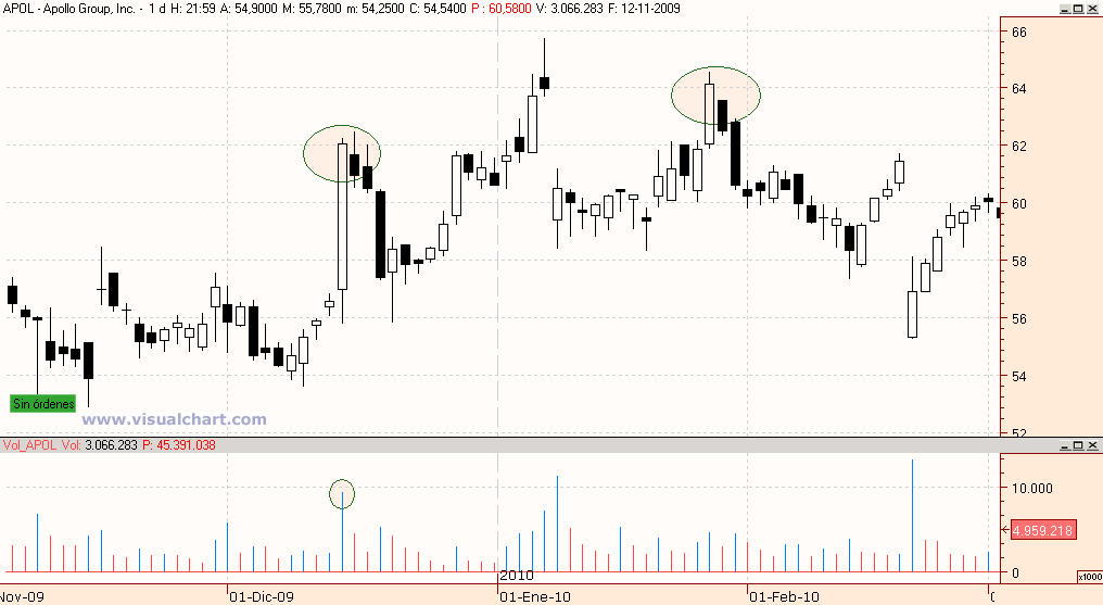 Recordamos que estamos observando una acción de más de 30 usd, el día en el que se activará la señal será cuando se produzca un gap en sentido contrario, a contrapelo, a la dirección de la vela del día anterior metiéndose en el rango de negociación de la misma, el gap debe ser de por lo menos un usd (te pongo ejemplos que no llegan al usd de gap, no me hagas buscar).