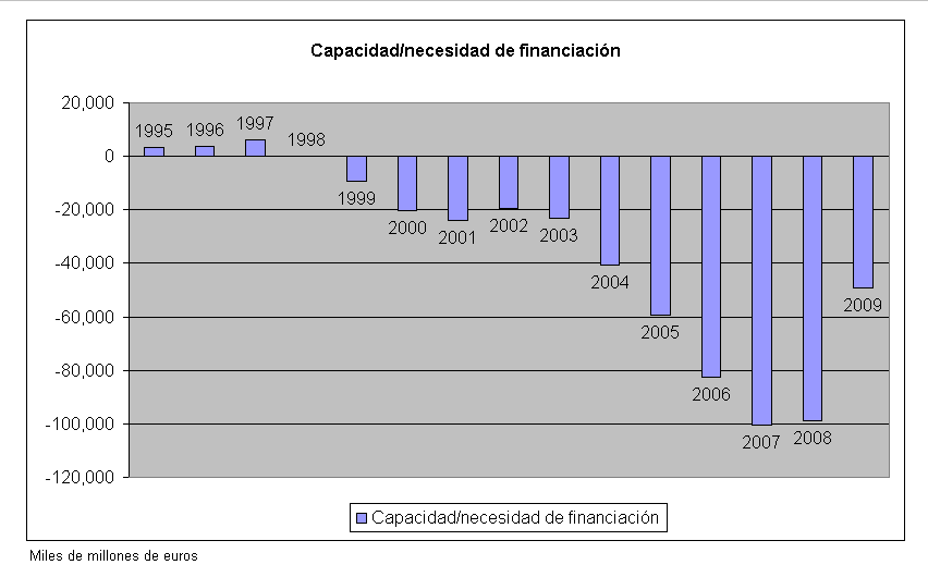 Edito para añadir la gráfica del origen de este disparate: la necesidad de financiación de España en los últimos 15 años...