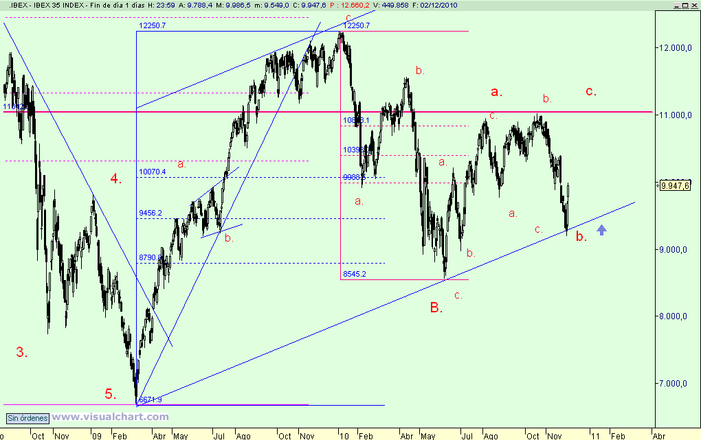 Seguimos, con el mismo objetivo para la onda (C). Y seguimos augurando un 2011 sorprendentemente alcista.