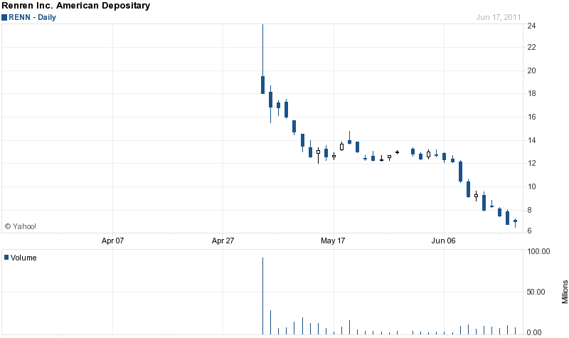Acaban de salir los Resultados del primer trimestre de Renren. Empresa china que es la principal red social en china (estilo Facebook), además de ser una empresa que permite jugar juegos online, escuchar música, tienda de ofertas, etc, etc. La verdad es que cuando salió sonaba de maravilla. Fue una de las primeras en salir al parquet de las del 2.0. Salió a cotizar el día 4 de Mayo en la bolsa americana a 14$ y en su estreno estuvo por encima de 18$. alcanzando valores por encima de los 20$ (ganancias superiores al 40% en un día) al estilo de todas las que luego le han salido en su estreno.