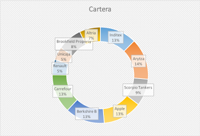 En el lado negativo sigue destacando Aryzta, donde la pérdida supera el 50%. Finalmente hubo ampliación de capital y me ví obligado a suscribirla. Volvemos al mismo análisis comentado en el párrafo anterior: entendí que era más ventajoso suscribir la ampliación que quedarme en el valor con una participación muy diluida. En la última conferencia anual de Cobas, Paramés reconoce el error pero se sigue manteniendo firme en la posibilidad de recuperar gran parte de la inversión. Incluso en las preguntas que le realizan los partícipes, no duda en responder que no le extrañaría nada ver el valor en 3-4 francos suizos. Con la ampliación de capital nuestro precio medio se queda fijado en 2,58 CHF. A esperar. No queda otra.