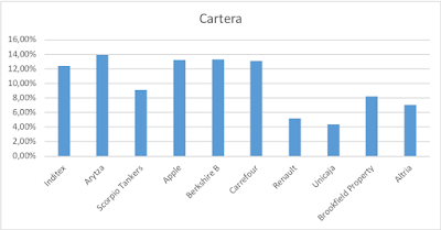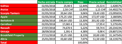 La verdad es que ambas están funcionando realmente bien desde el momento de su incorporación, habiendo coincidido prácticamente su precio de incorporación con los mínimos de la cotización. En ambos casos hemos estudiado bien el margen de seguridad, siendo en mi opinión bastante elevado a las actuales cotizaciones. El escenario probabilístico de rentabilidades se me mostraba asimétrico, contando con muchas más opciones de obtener rendimiento positivo, como hasta la fecha así está siendo. No obstante, dado que nuestra horizonte es a largo plazo, este último punto es poco destacable.