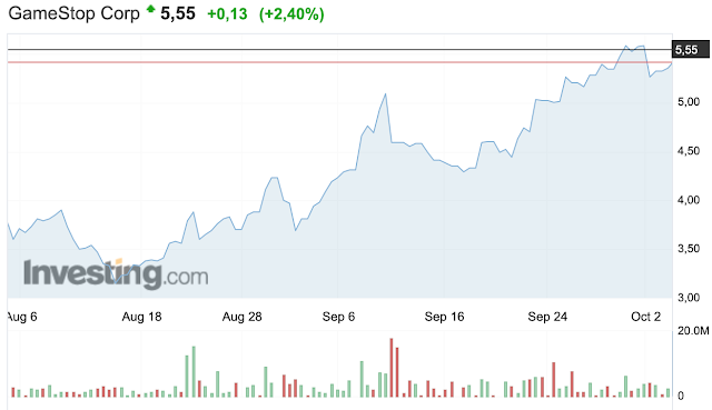 - GameStop, con una revalorización mensual del 40%. La evolución mensual de GME ha sido un tiovivo. Empezó el mes fenomenal, gracias sobre todo a su recomendación por parte de Michael Burry (el gurú que predijo la crisis financiera, protagonista de la película "The big short"). Posteriormente, con la presentación de resultados, el valor tuvo unos días negativos pero parece que ha sido únicamente algo pasajero ya que continuó con su senda positiva. La compañía está subiendo sus ventas en coleccionables, algo muy positivo, dado que es un mercado en claro crecimiento y donde parece haber encontrado su nicho de mercado. Es obvio que en los meses previos a la navidad, sin el lanzamiento de las consolas de 5ª generación aún tiene que sufrir. El resultado de la compañía tras navidad puede ser clave para el devenir de la acción.