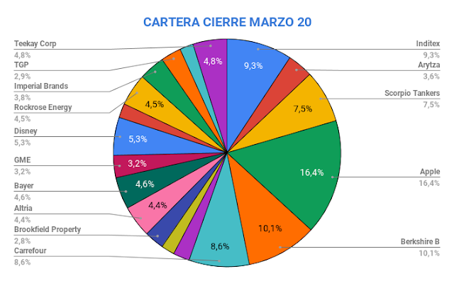 Con estas reflexiones, doy por finalizada una entrada atípica. Los que sean asiduos a los resúmenes mensuales de la cartera, echarán de menos el repaso a los mejores y peores comportamientos de los valores que componen la misma. Dado que las pérdidas han sido generalizado, más por las consecuencias económicas de la actual pandemia, que por motivos intrínsecos a las propias compañías, entiendo que no tiene mucho sentido pararme en analizarlo, prefiriendo hacer hincapié en los pensamientos personales de índole macro que sí pienso que son relevantes en este momento.