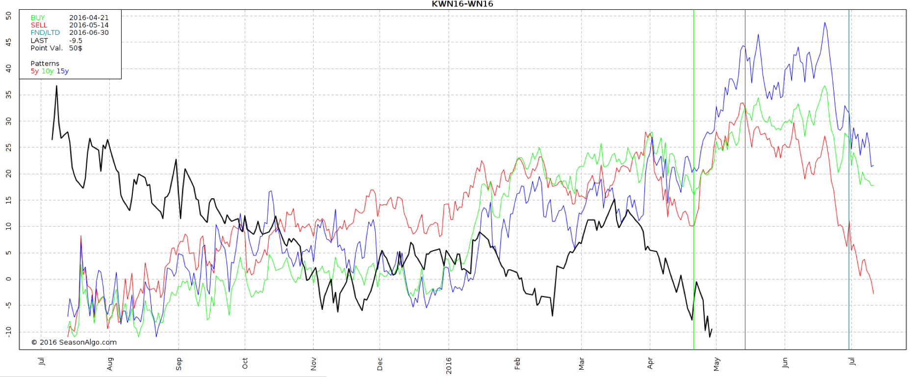 Como podemos ver en la estacionalidad ahora hay una estacionalidad alcista favorable para esta spread, Comprando Kansas y Vendiendo Chicago.