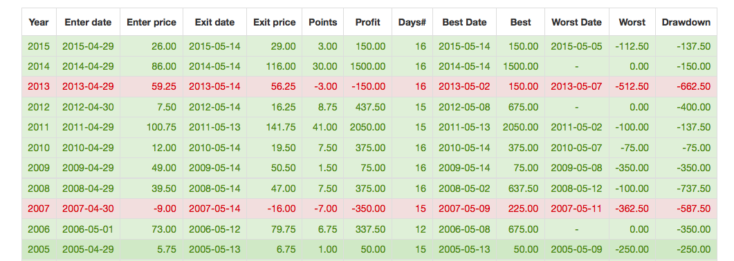 Se puede observar que en los 10 ultimos años se ha perdido dos veces, una entrando en 59 positivo.. no es nuestro caso, y la otra es entrando en -9, este podria ser nuestro caso.. espero que este año sea diferente, pero de todos modos el reisgo es mas limitado...
